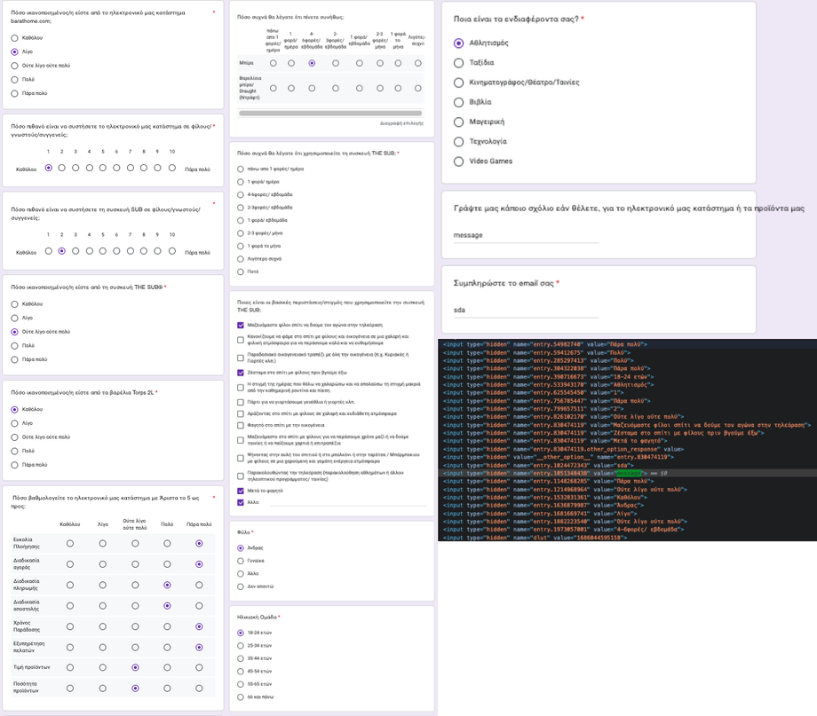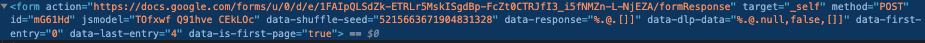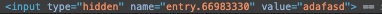Στο παραπάνω παράδειγμα ουσιαστικά βλέπουμε ένα πεδίο με ελεύθερο κείμενο οπότε ποστάρουμε στη φόρμα το name entry.66983330 και το value adafasd και έτσι δηλώνεται η απάντηση κατευθείαν.