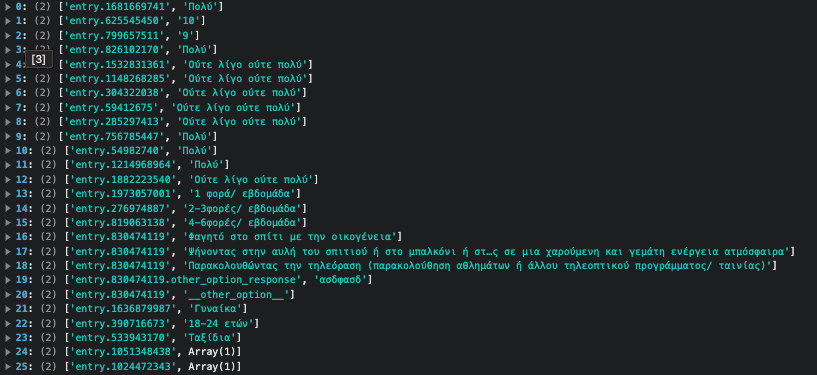 Βλέπετε όλα τα πεδία και στο inspect θα δείτε όλα τα entries και όλα τα values.